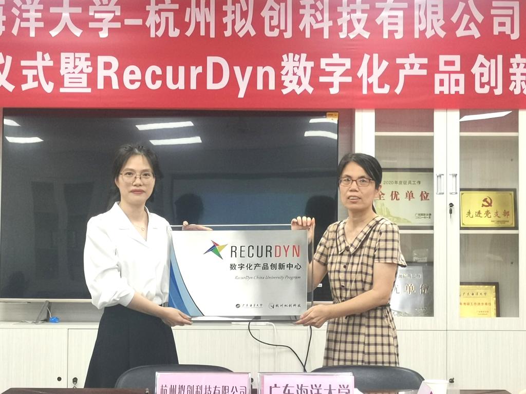 王峰表示,RecurDyn源于高校,发展壮大辅助工程师解决各种工程技术问题,并积极加强与高校合作,太阳集团tyc151也成为华南区首家、中国第3家“RecurDyn中国大学计划”合作高校。钟桂安代表公司感谢杭州拟创科技有限公司为公司学术研究与人才培养提供的慷慨捐赠,并颁发捐赠证书。RecurDyn市场运营经理王峥燕与机械工程系主任尹凝霞共同为“RecurDyn数字化产品创新中心”挂牌。