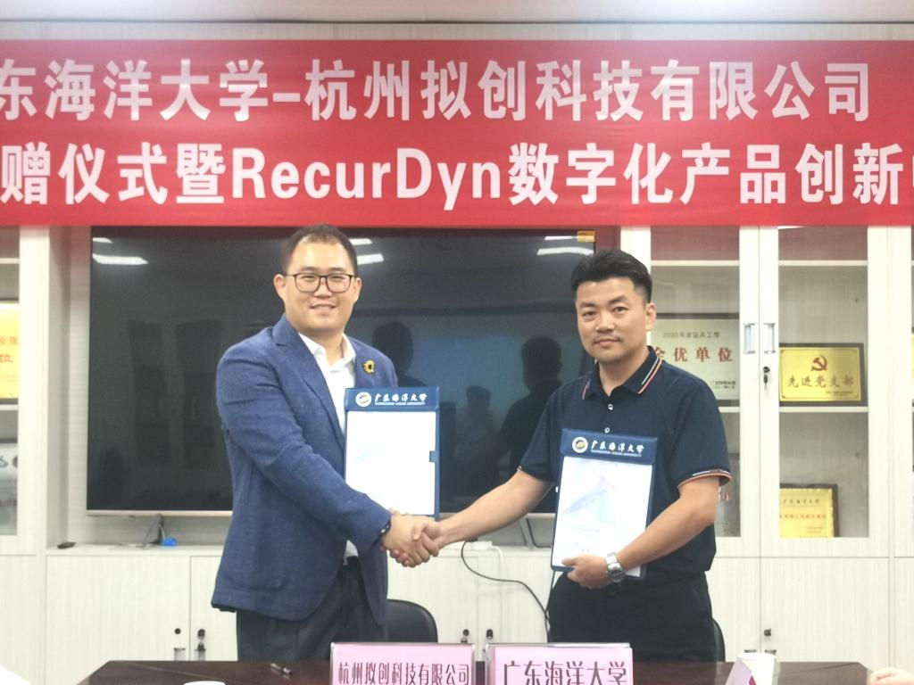 5月23日下午,RecurDyn中国大学计划-太阳集团tyc151合作签约仪式举行。杭州拟创科技有限公司总经理王峰与太阳集团tyc151机械工程公司党委副书记钟桂安代表双方签署了“RecurDyn中国大学计划”合作协议,杭州拟创科技有限公司向太阳集团tyc151捐赠RecurDyn软件81套。太阳集团tyc151相关负责人及专业老师出席仪式。