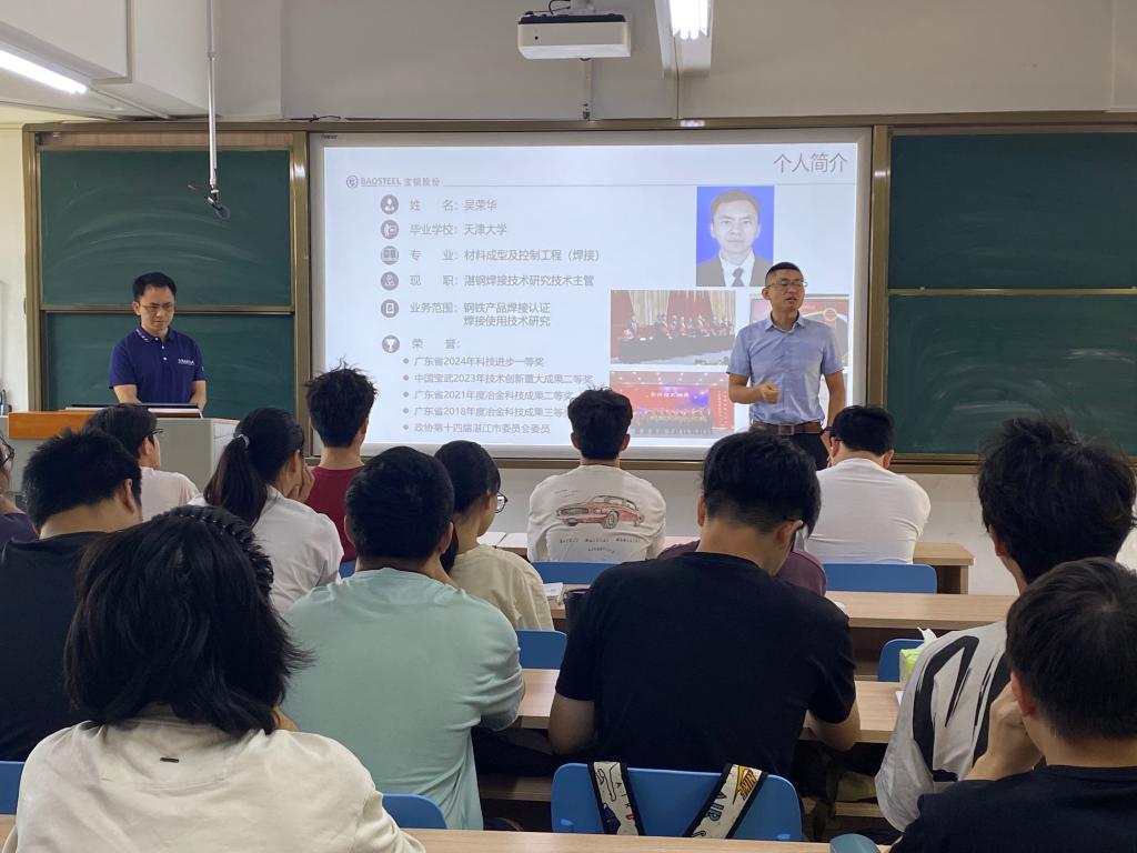 为深化产教融合,创新人才培养模式,切实提升员工的工程实践能力与行业认知,10月18日,公司成功举办了一场别开生面的企业专家进课堂活动。公司特邀宝钢湛江钢铁股份有限公司焊接技术主管吴荣华工程师,在广学楼716教室为材料成型及控制工程专业的员工带来了一堂紧扣行业前沿的《材料成型工艺》-焊接工艺专题课。