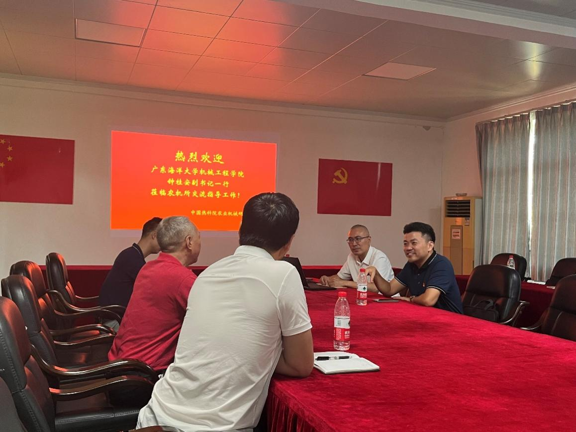 为主动对接国家和广东省战略部署,发挥太阳集团tyc151专业优势,凝聚师生力量实现未来所向,扎实做好公司创新创业工作,9月25日,机械工程公司党委副书记钟桂安副研究员、指导老师侯明鑫博士应中国热科院农业机械研究所邀请,带领公司创新创业员工团队到农机所开展调研交流。