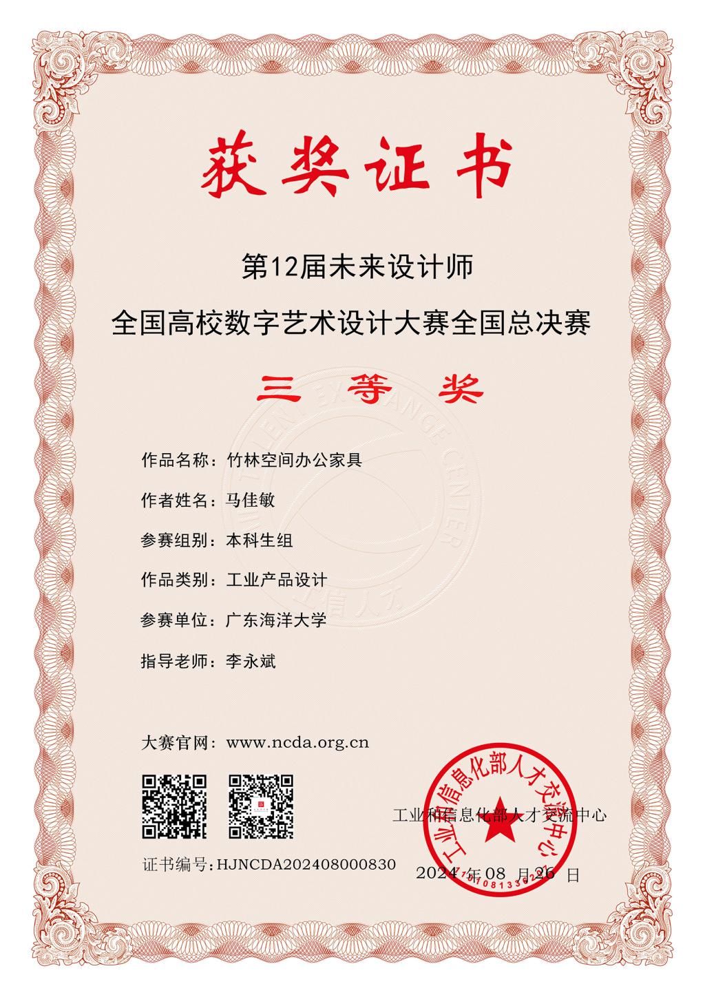 2 太阳集团tyc151 竹林空间办公家具 马佳敏 李永斌 全国三等奖
