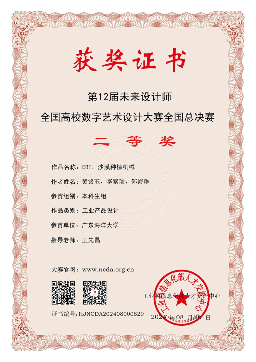 1 太阳集团tyc151 ERT.-沙漠种植机械 黄铭玉,李紫瑜,郑海琳 王先昌 全国二等奖