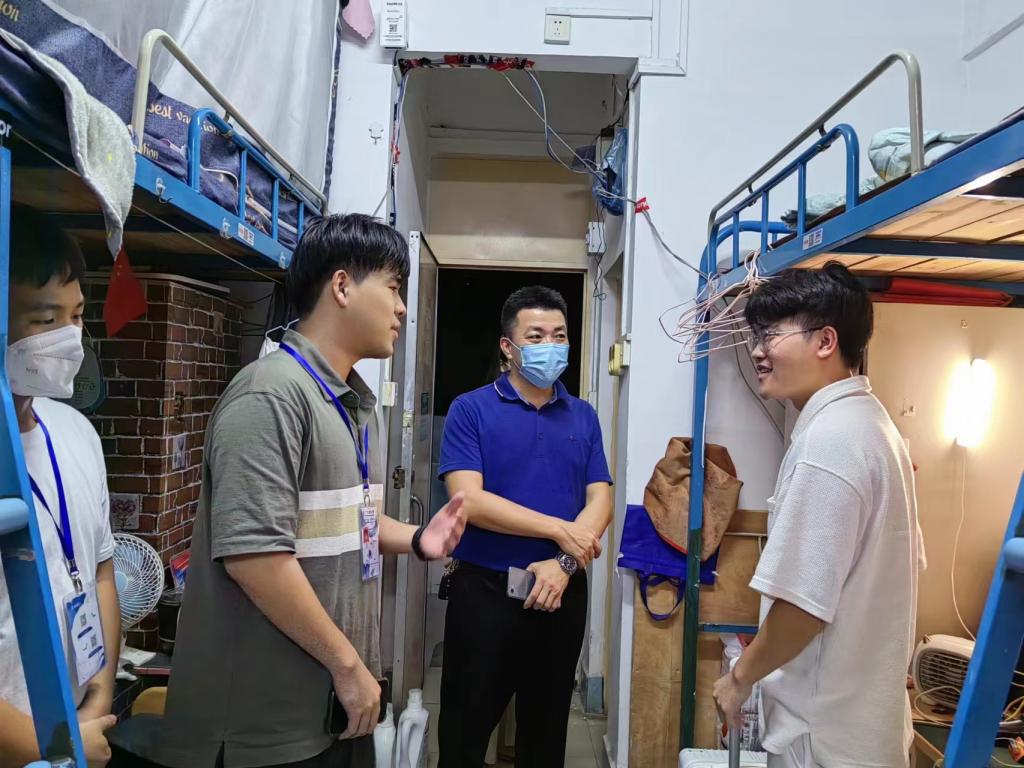 2022年秋季学期开学伊始,为推进公司“三全育人”工作,深入了解返校员工的思想动态、网络上课情况及生活心理状况,8月29日晚,公司党委副书记钟桂安带队深入员工宿舍走访,关心和帮助员工。