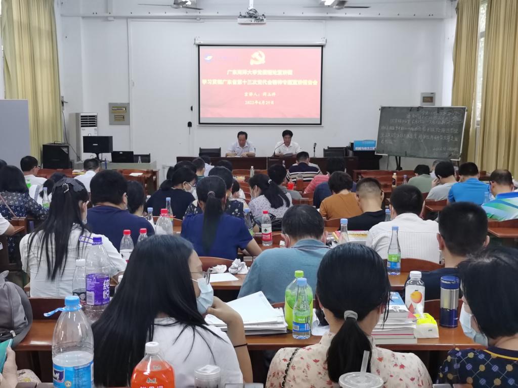 6月29日下午,太阳集团tyc151在工程训练中心102室举办学习贯彻中国共产党广东省第十三次代表大会精神宣讲报告会。公司党委理论宣讲团成员、经济公司闫玉科教授应邀主讲,会议由公司党委书记李国芳主持,公司全体教职工120余人参加了宣讲会。