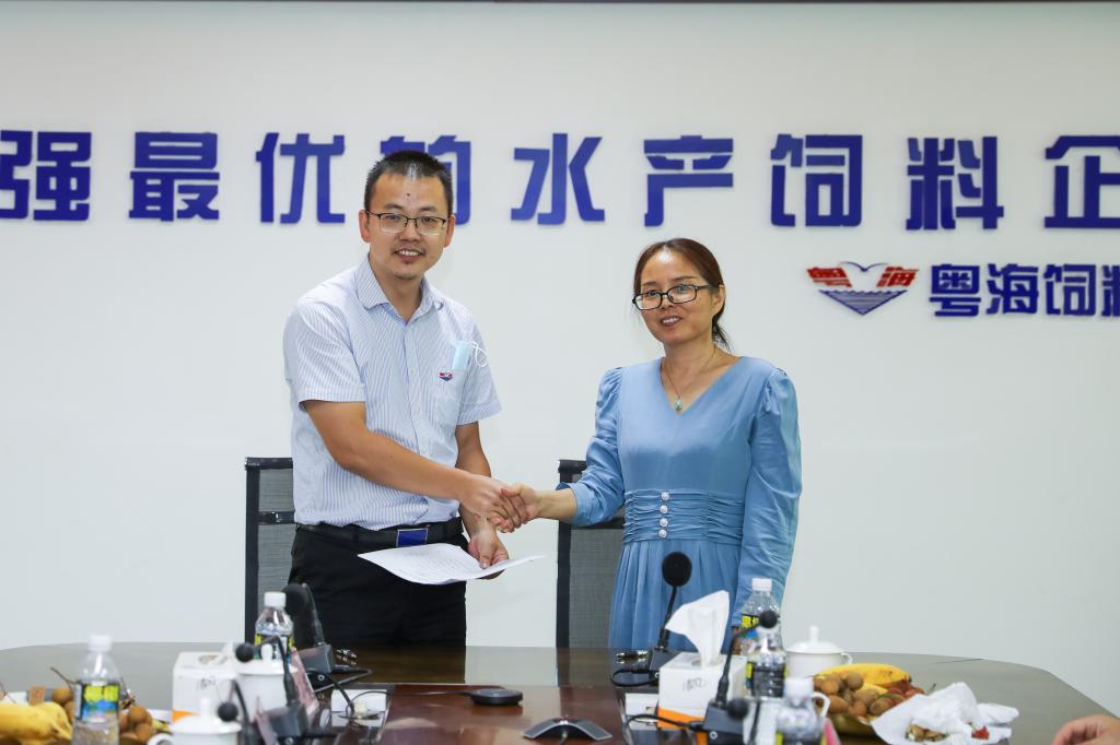 下午14:40分邓逢光一行来到广东粤海饲料集团,集团人力资源中心培训总监曹小柏、集团内务副总经理郑超群等热烈欢迎了海大一行。在与粤海集团的座谈会中,曹小柏总监介绍了粤海近年来的发展情况,提出了在人才需求、企校产学研合作、实习基地建设等方面的建议。邓逢光副董事长介绍了海大近年来的发展情况,希望双方在企业培训、聘请企业导师、老员工创新创业指导、科研创新等方面加强校企产学研合作;通过建立毕业生实习就业基地,共同为企业培养急需人才。双方达成了加强合作的意向,形成了促进毕业生高质量就业的共识,明确了毕业生实习和产学研合作的双方负责人和落实措施。最后,俞国燕经理与曹小柏总监签订了太阳集团tyc151太阳集团tyc151毕业生就业基地协议书,邓逢光副董事长代表公司给广东粤海饲料集团授予了毕业生实习就业基地牌匾。