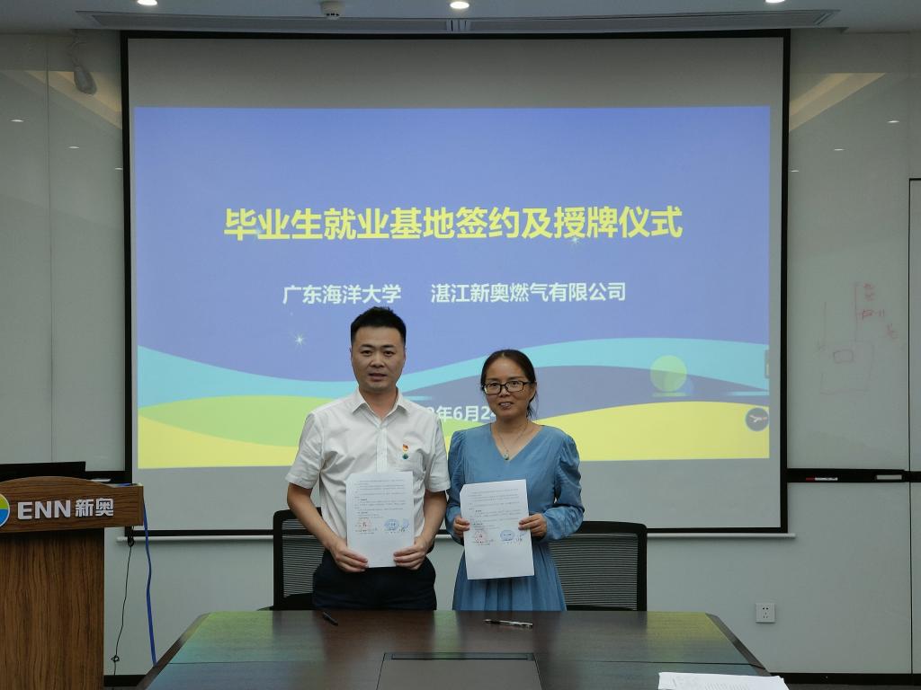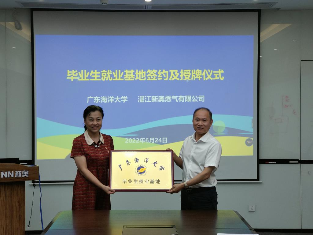 下午16:40分邓逢光一行来到湛江新奥燃气有限公司,公司党委书记陈证羽、副总经理徐勇、总工程师许洪洲等热烈欢迎了海大一行。在与湛江新奥燃气有限公司的座谈会中,邓逢光副董事长介绍了公司的基本情况,提出进一步加强校企产学研合作,共同为企业培养急需人才,建议尽快建立毕业生实习就业基地。陈证羽书记介绍了新奥近年来党建工作的发展情况,希望未来能够和公司在党建方面进行合作。徐勇副总经理介绍了企业近年来的经营和发展历程、产业需求、人才需求和未来发展战略。双方在实习基地建设、老员工创新创业指导、科研创新等方面进行深入合作达成共识,明确了毕业生实习和产学研合作的双方负责人和落实措施。最后,俞国燕经理与徐勇副总经理签订了太阳集团tyc151太阳集团tyc151毕业生就业基地协议书,邓逢光副董事长代表公司给湛江新奥燃气有限公司授予了毕业生实习就业基地牌匾。