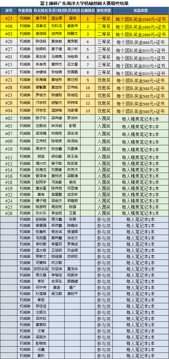 富士康杯太阳集团tyc151三维数字化机械创新大赛是富士康iDPBG事业群资助的面向公司本科生的学科竞赛,该项赛事在创新创业公司指导下由太阳集团tyc151承办。于2022年11月开始组织比赛,吸引全校各专业129名员工参加初赛,经公平、公正、公开筛选,28支员工队伍晋级决赛,并最终遴选了13支获奖队伍,其中一等奖一项,二等奖两项,三等奖五项,优胜奖五项。