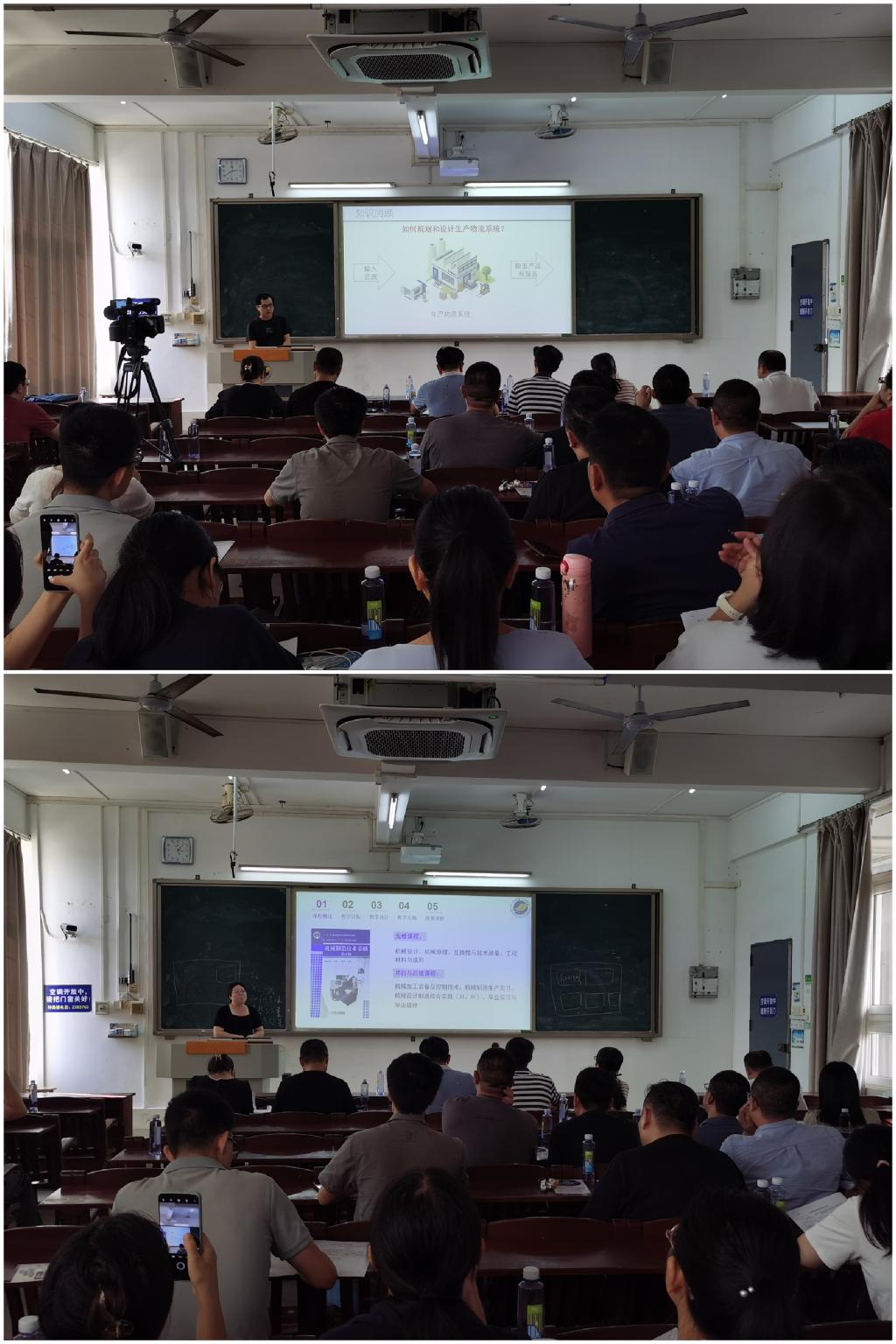 参赛教师张静、徐晓鸣分别以“机械制造技术基础—装夹与定位”、“现代物流设施规划—工厂设施布局设计”为内容开展说课、现场课堂教学,并结合本阶段课堂教学实际,从教学理念、教学方法和教学过程进行教学反思。评审专家根据参赛教师授课过程及教学要求进行授课亮点点评,并就教学互动、说课教学设计等方面提出建议。