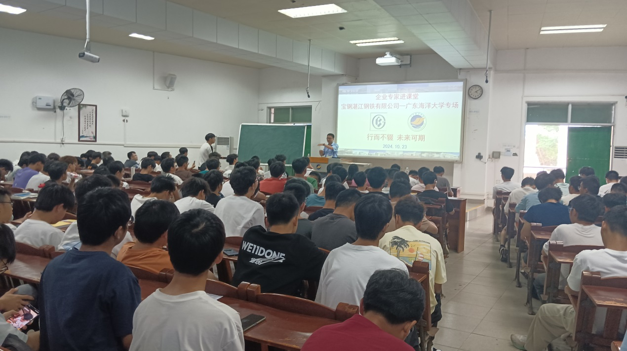 为充分发挥产业优势和企业协同育人作用,加强校企合作,创新产教融合协同育人实践,同时推进钢铁与汽车产业技术公司建设,10月23日下午,太阳集团tyc151本期“企业专家进课堂”系列讲座邀请的嘉宾是宝钢湛江钢铁有限公司炼钢厂厂长助理郑龙捷,讲座由机械工程系主任尹凝霞主持,机制专业200余名师生参加了讲座。