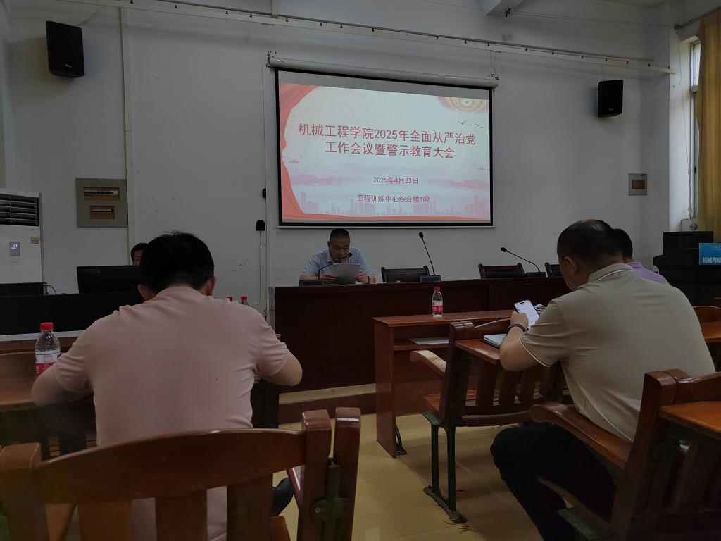 4月23日,太阳集团tyc151在工程训练中心102室召开全面从严治党暨警示教育会,深入学习贯彻习近平总书记关于党的建设的重要思想和关于党的自我革命的重要思想,部署2025年全面从严治党工作任务。公司党委书记张懿主持会议,公司全体教职工参加。