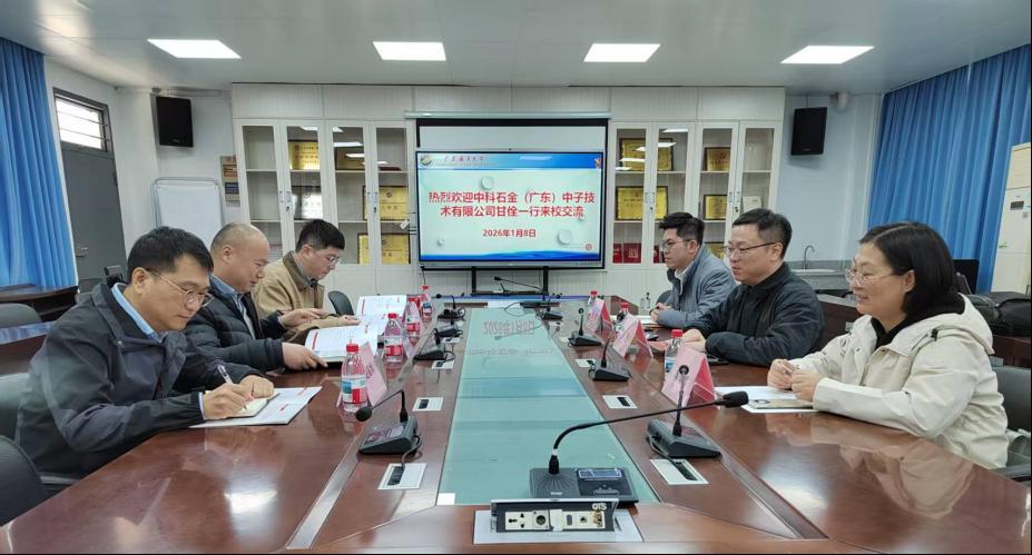 1月8日下午,中科石金(广东)中子技术有限公司执行总裁甘佺一行3人到访公司交流座谈,双方围绕产学研协同创新、人才培养、成果转化等关键领域深入磋商,达成系列合作共识,明确将加快推进合作协议签署,推动校企合作落地见效。公司经理刘海涛等领导热情接待并参加座谈。