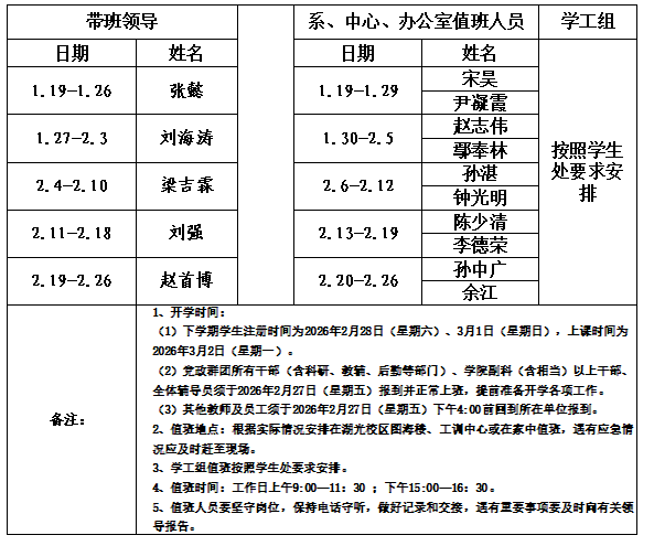 2026年寒假值班安排表(寒假2026.1.19-2026.2.26)
